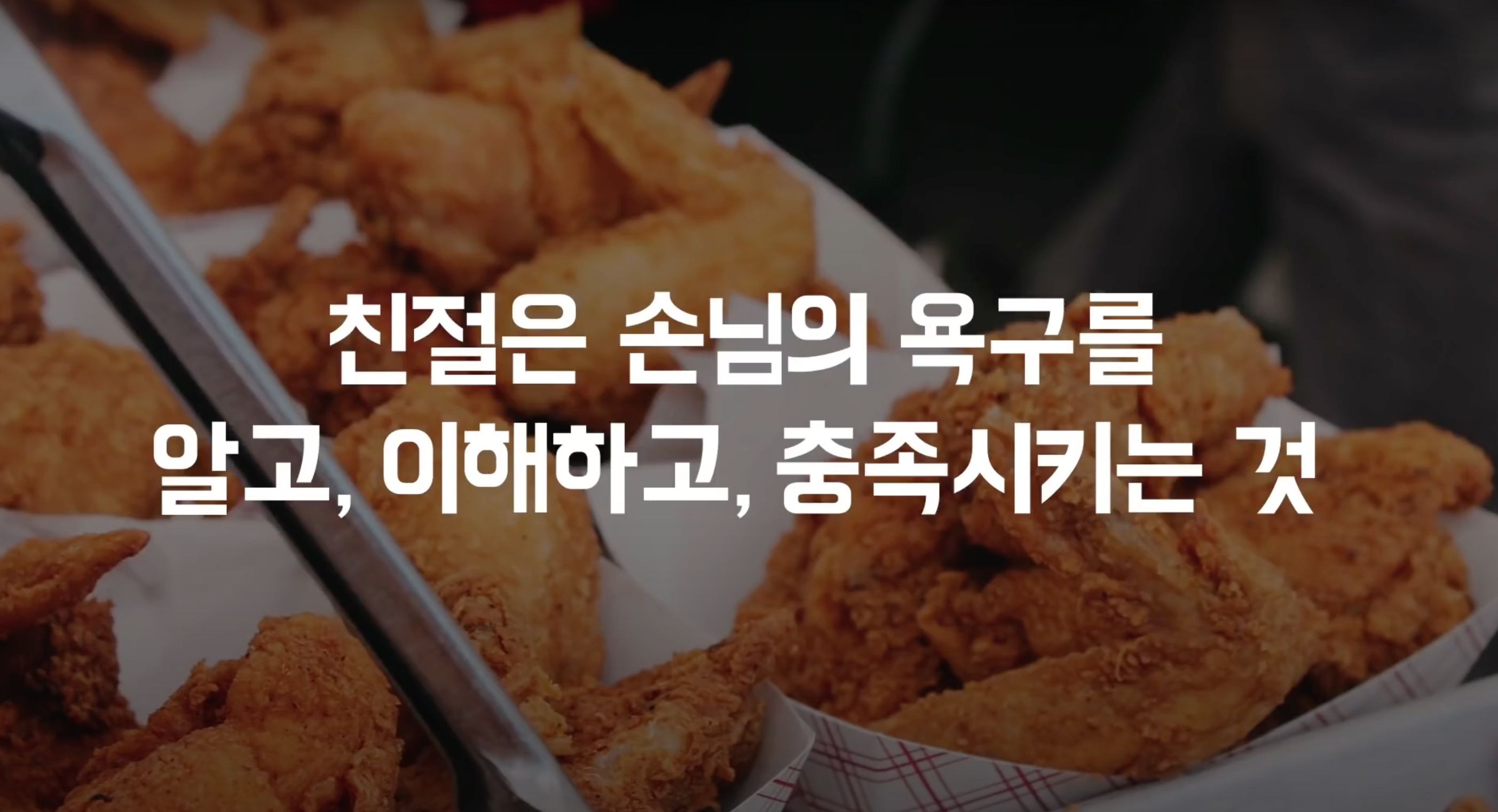 강연 제목도 '모두가 다 알지만 잘 못하는 장사의 비법' 이라고 하지 않는가. 오래전 베스트 셀러였던 책 중에 '내가 정말 알아야 할 모든 것은 유치원에서 배웠다' 라는 제목의 책이 있다. 어쩌면 우리는 스스로 생각하는 것보다 더욱 많은 것들을 알고 있는지도 모른다. 뭘 해야하고 하지 말아야 할지, 무엇이 중요하고 중요하지 않는지. 다 배웠지만 살아보니 그냥 남들 하는 정도로 하게 되고 그래도 대충 살아지니 살아온 관성대로 이어나가는게 많지 않나 싶다. 하지만 조안나 사장은 달랐다. 그 간단한 '친절' 이라는 장사의 덕목을 실천하기 위해 끊임없이 창의적 아이디어를 쏟아놓는다. 그 아이디어는 어디서 왔을까? 그것은 강연 도중 이야기한 조안나 사장의 '친절'의 정의에 있다고 생각한다. 그녀는 친절을 그저 막연하게 생각하지 않았다. 매우 정확히 정의내리고 있었고, 나는 그것을 그녀가 생각한 친절의 본질이라고 생각한다. '친절은 손님의 욕구를 알고 이해하고, 충족시키는 것' 그녀는 친절을 이렇게 정의내렸기에 구체적인 아이디어를 떠올릴 수 있었을 것이다. 그녀는 손님의 욕구를 알고 이해하기 위해 손님의 입장에서 생각했다. 당연히 치킨에는 콜라를 마시겠지 생각하고 있을때 손님의 취향을 알기 위해 노력했고, POS 단말기에 이전에 손님이 주문했던 방식을 입력해놓고 다음 주문시에는 그 욕구를 반영해 의향을 물어보는 방식을 취했다. 치킨무를 먹고 싶지 않아 빼달라는 손님에게는 그 요구를 그대로 들어주었고, 그 빈자리에 콘셀러드와 같은 인기 있는 사이드메뉴로 대신 채워놓는 방식으로 '손님의 욕구를 알고 이해하고 충족시킨다' 라는 자신만의 친절의 정의를 실천하고자 했다.