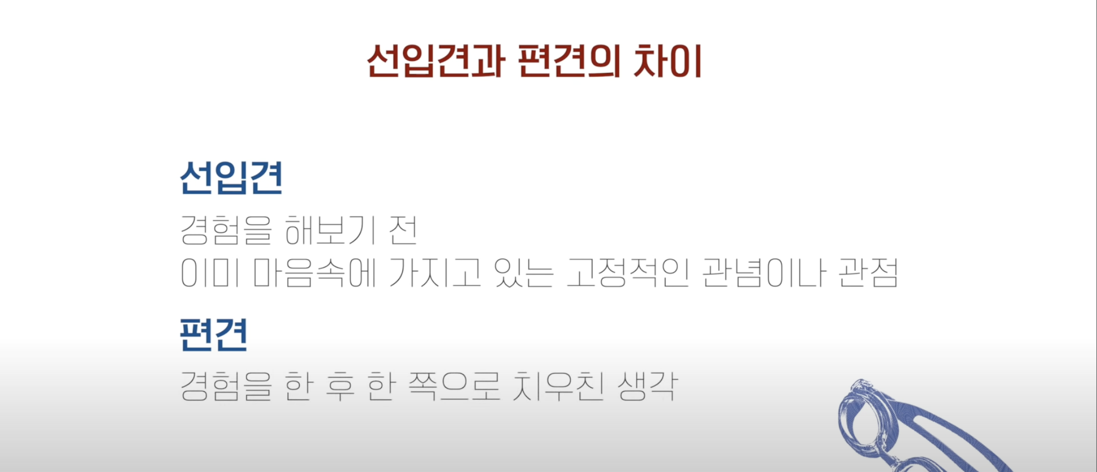 그는 선입견과 편견에 대해서도 나름 이렇게 정의를 내렸다.
