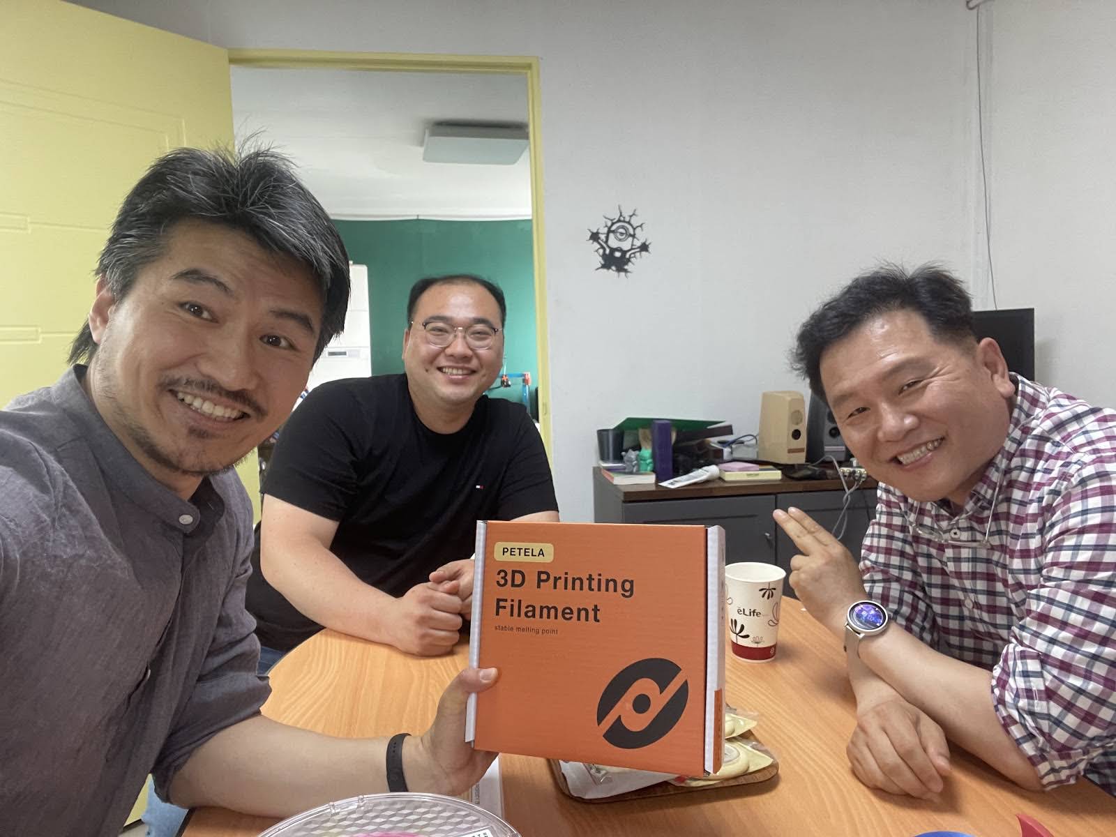 그런데, 2년전에 만났던 한 국내 재료 업체가 프로토타입으로 만들었다는 플렉서블 필라멘트의 출력물을 만져보는 순간, 바로 이거야! 라는 생각이 들었고, 그동안 출시만을 기다리고 있었는데, 드디어 제품이 나왔다고 해서 필라 한박스를 가지고 페텔라에서 제게 직접 가져다 주셨습니다.