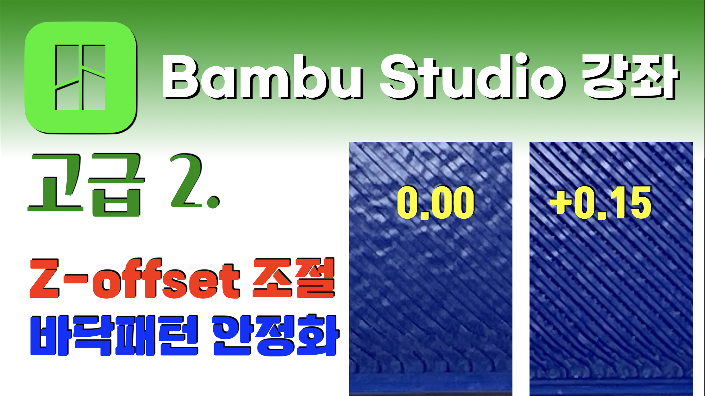 그런데, 가끔 바닥면의 출력형태를 조금 바꾸고 싶을때가 있을 수 있습니다. 너무 눌린다거나 너무 떨어져서 출력이 된다는 느낌을 받을때, 노즐을 조금 더 올렸으면, 혹은 반대로 좀더 내렸으면 할 때 오늘 영상이 도움이 되시길 바랍니다.