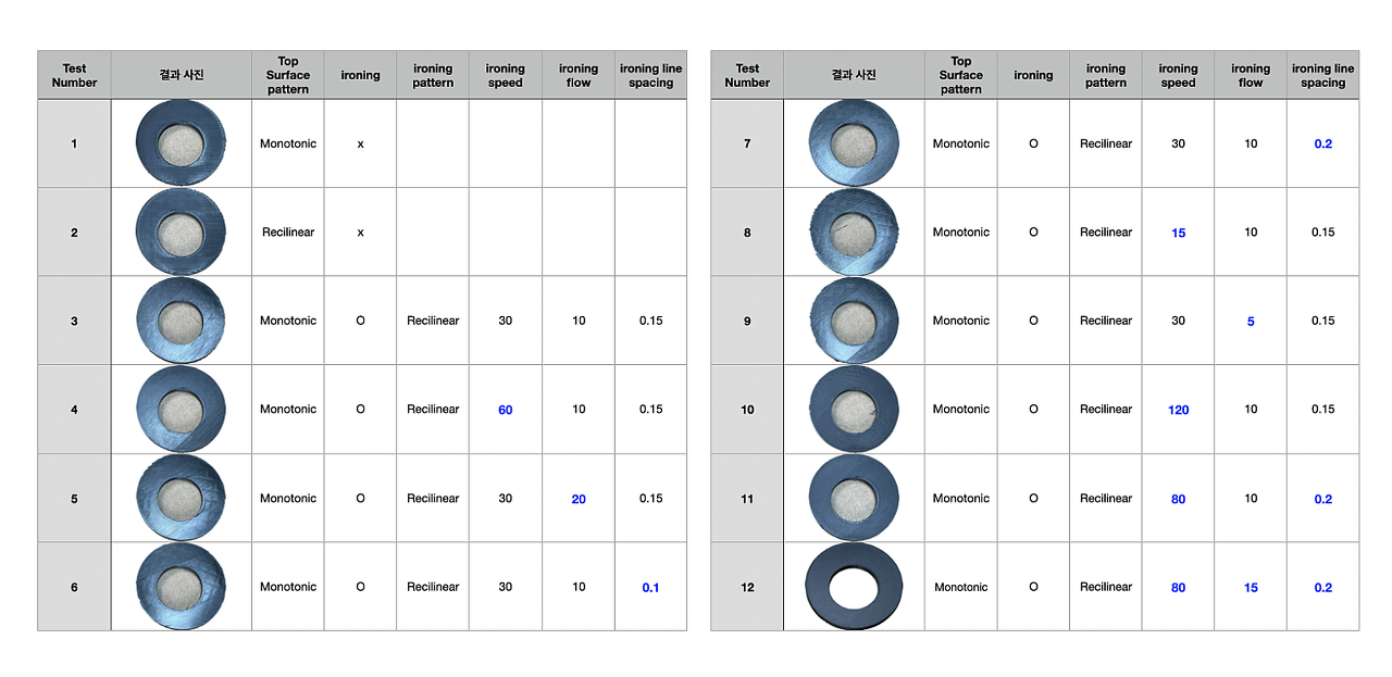 오늘 강좌에서는 ironing 기능에 각 설정값에 대한 설명과 직접 간단한 모델링을 ironing 설정을 변화시켜가며 출력한 결과에 대한 리뷰를 담아보았습니다. ironing 이 제대로 결과가 안나올때 참고하시면 좋을거라 생각합니다.