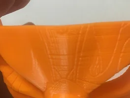 셋째는 표면 불량이다. 앞서 소개한 영상에도 나와 있지만 필라멘트는 온도조건에 따라 표면 양상이 다르게 나타난다. 만약 온도가 상한에 가까울 경우에는 쿨링이 약할 때 층이 무너져 흘러내리는 모습을 볼 수가 있고, 하한에 가까울 경우에는 표면이 불투명한 결과를 보인다. 특히 녹은 필라멘트는 유체의 흐름을 띄기 때문에 속도와 가속도를 가지고 빨리 움직이는 노즐에 의해 표면 주름의 양상이 달라질 수가 있다. 특히 꺾이는 부분에서는 온도가 너무 높을 때 이 영향을 더 받게 된다.